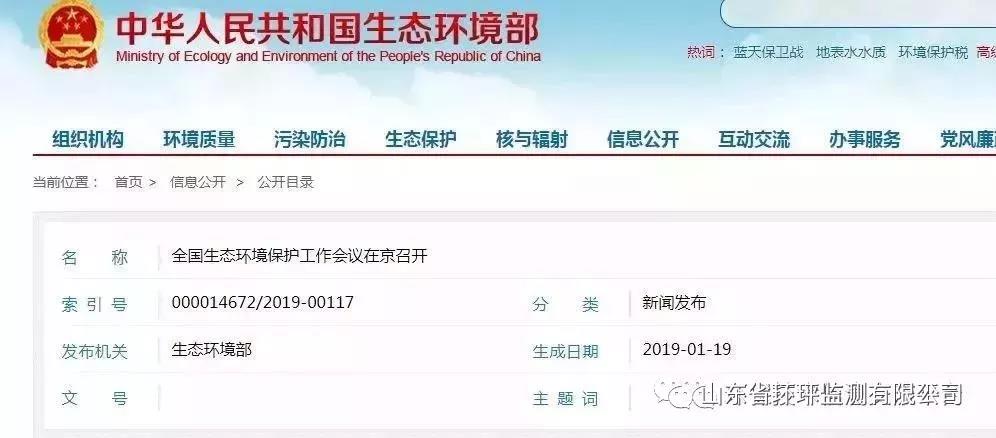 与此同时,2019年1月18日—19日,生态环境部召开了2019年全国生态环境保护工作会议,总结2018年工作进展,安排部署2019年重点工作。相关消息称,2019年第二轮环保督查:以下八项必查。